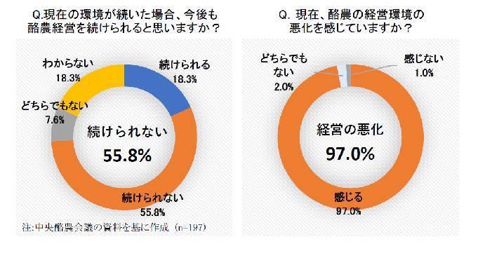 酪農家の9割が経営難、中酪実態調査で判明 2022/06/15 16:50 文字サイズ 小 中 大 中央酪農会議は15日、急激なエサ高などを受け、酪農現場の実態を探る緊急調査の結果を公表した。国内197人の調査対象(酪農家)のうち、97.0%が経営環境の悪化を痛感している上、65.5%が赤字に転落している実態が明らかになった。中酪は「日本の酪農業はまさ... この記事は購読者限定です 2週間無料試読 購読お申し込み